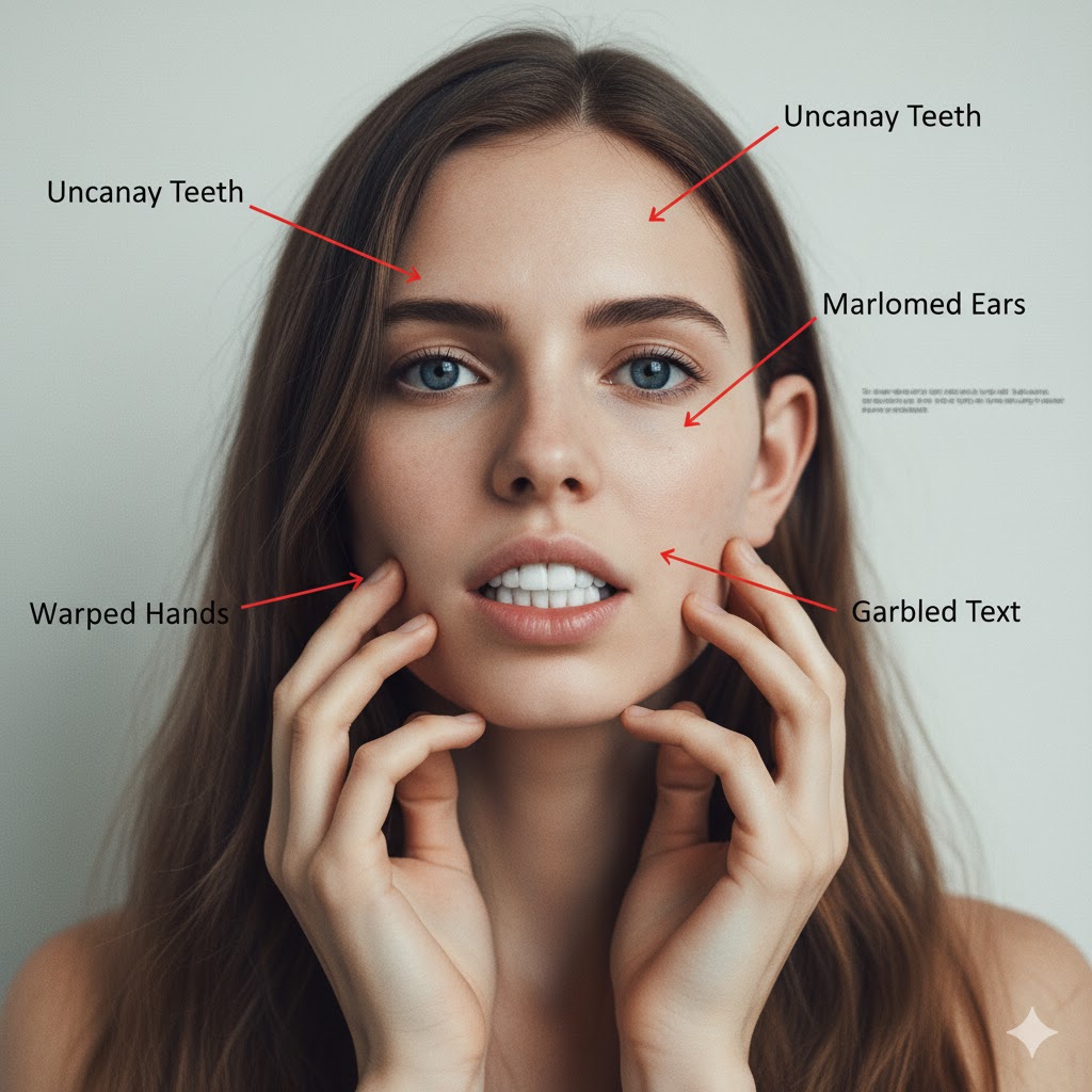 - Subtle Imperfections in Faces: Look closely at eyes (do they align?), teeth (are they unnaturally perfect or irregular?), and skin texture (too smooth or too grainy?). AI often struggles with realistic hair strands, earlobes, and hands.
